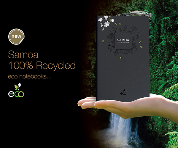 The Samoa recycled paper cover goes further than many other recycled papers and is made from 100% recycled paper fibres.